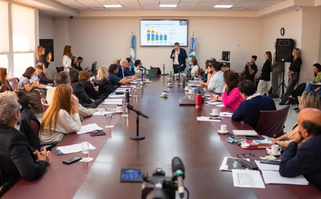 Durante su exposición ante la Comisión de Legislación de Asuntos Constitucionales y Justicia estuvo acompañado por la secretaria de Hacienda y Finanzas, Carola Pogliano, y la titular de la Unidad Provincial de Enlace y Ejecución de Proyectos con Financiamiento Externo (Upefe), Tanya Bertoldi, quien además está al frente de la secretaría de Obras Públicas.